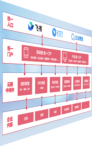 对协作平台提供支持服务,,,,支持企业应用与协作平台对接,,,,包含组织同步、、、、消息集成、、、待办集成等。。。。支持目前主流的协作平台:钉钉、、、企微和飞书。。。